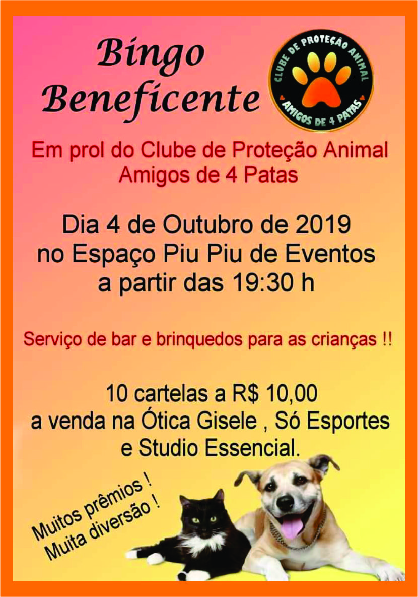 PARTICIPE DO BINGO BENEFICENTE EM PROL DO CLUBE DE PROTEÇÃO ANIMAL